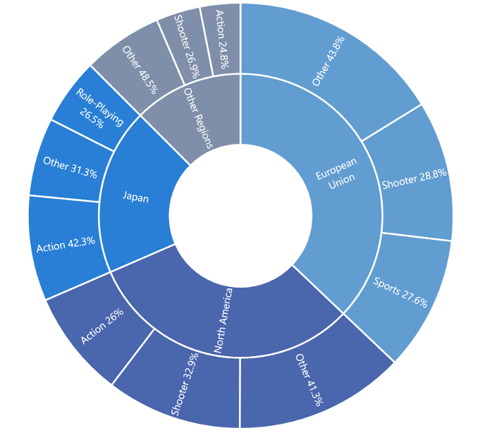In terms of in which genres should be invested, these should be considered at a regional level, in particular for the Japan market where Action and Role-playing games account for largest shares of the regional sales where as Shooter games make up the largest proportion of sales in the other regions.