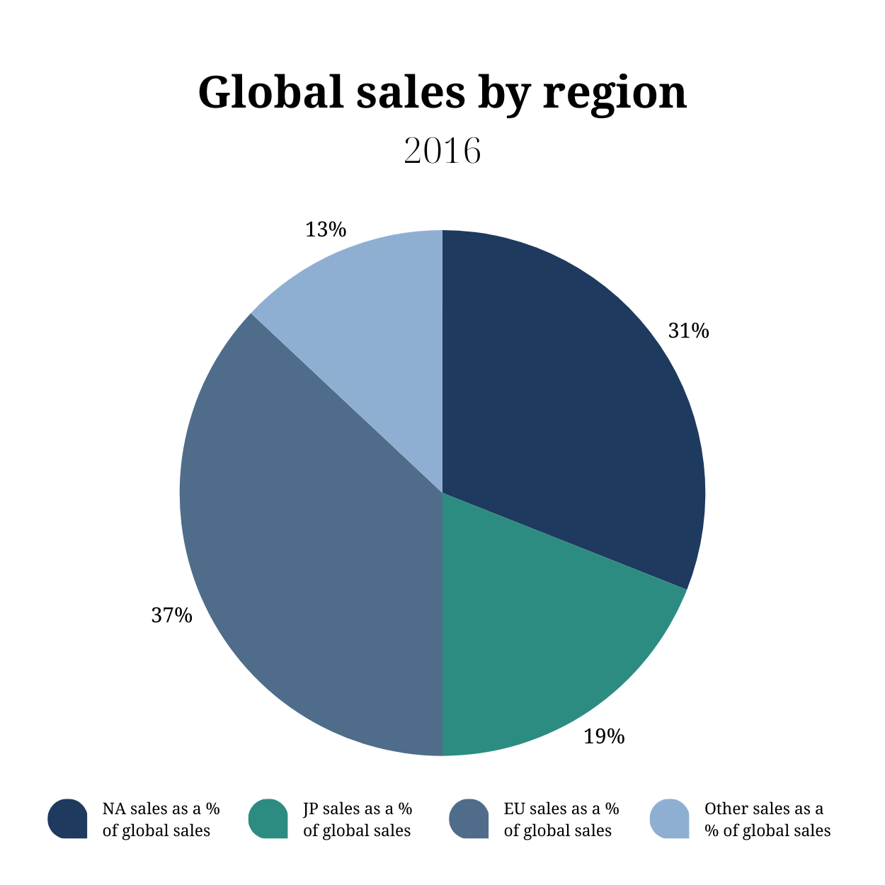 - Whilst NA sales as a % of Global sales have fluctuated over time, the trend of the last 10 years is that they have been decreasing.