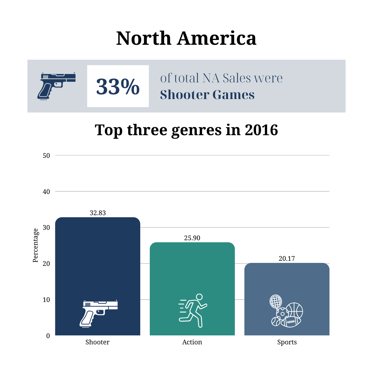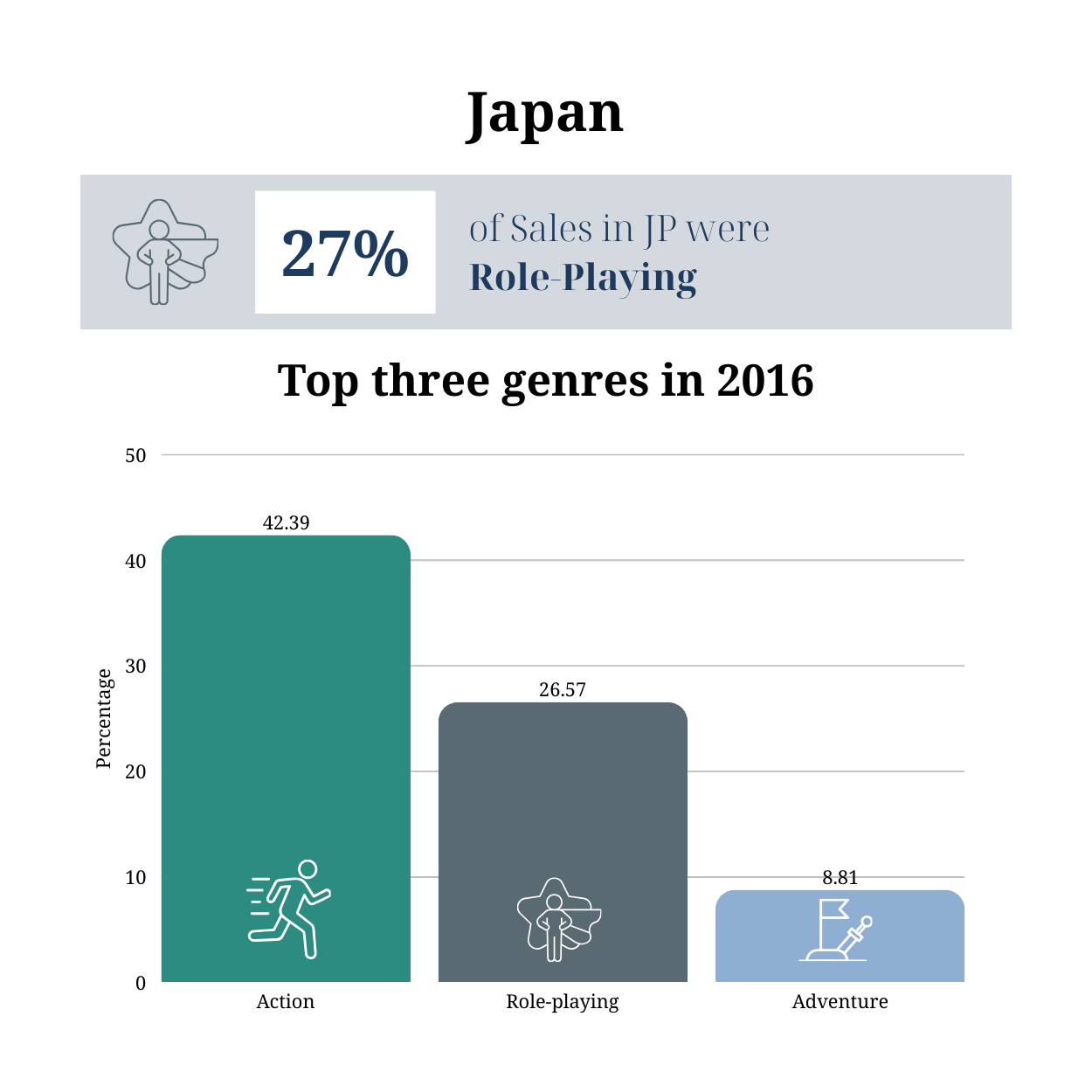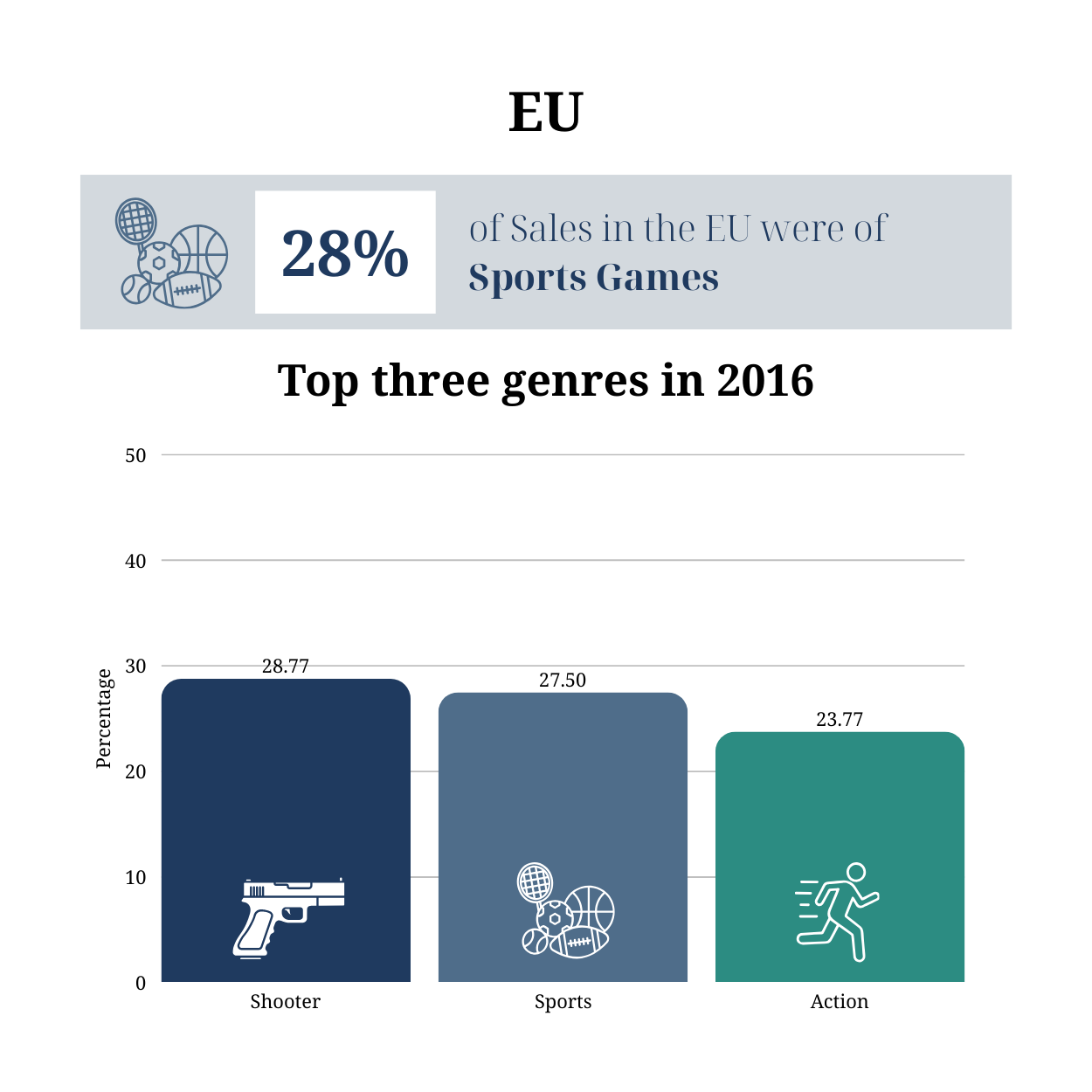 The same understanding has also been applied to performance of game genres, that sales in the likes of platform and shooter games have remained consistent over time with little variation between the different geographical regions.